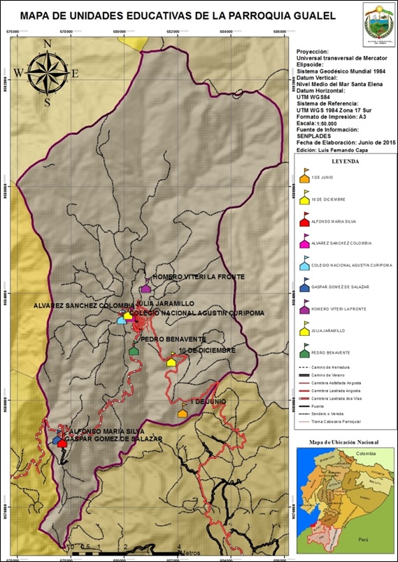 Establecimientos educativos básicos y bachillerato de la parroquia Gualel